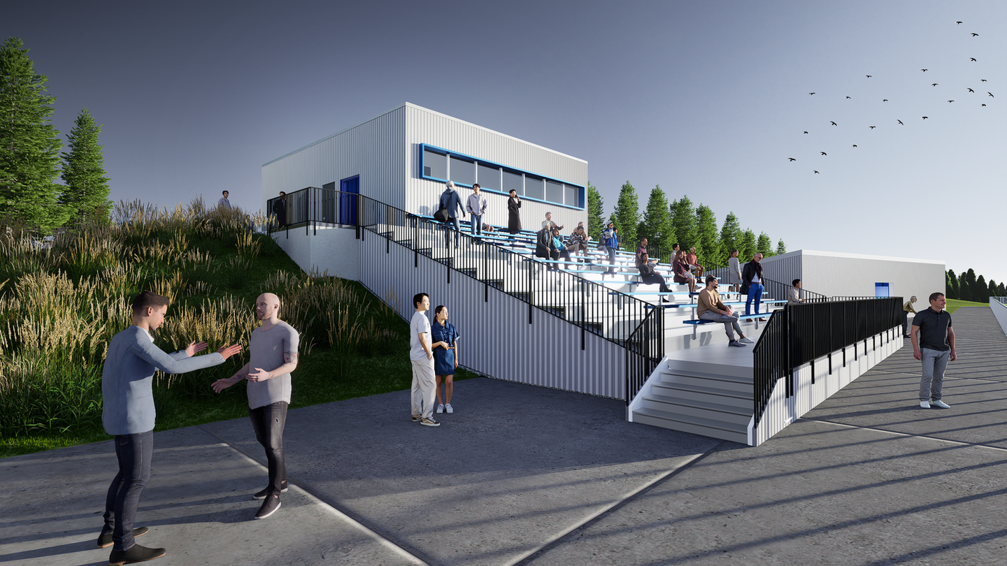 The full Tarkett Sports team delivered a phased project approach that empowered the Owner to customize and prioritize their Track project. The design team delivered all new throwing areas, jumps, reconfigured pole vault, track surfacing (including a post-tension base with a 50 year warranty). Ampere also provided the long term vision of upgrading the stadium with new bleachers, press box, restrooms, officials rooms, locker rooms and concessions.